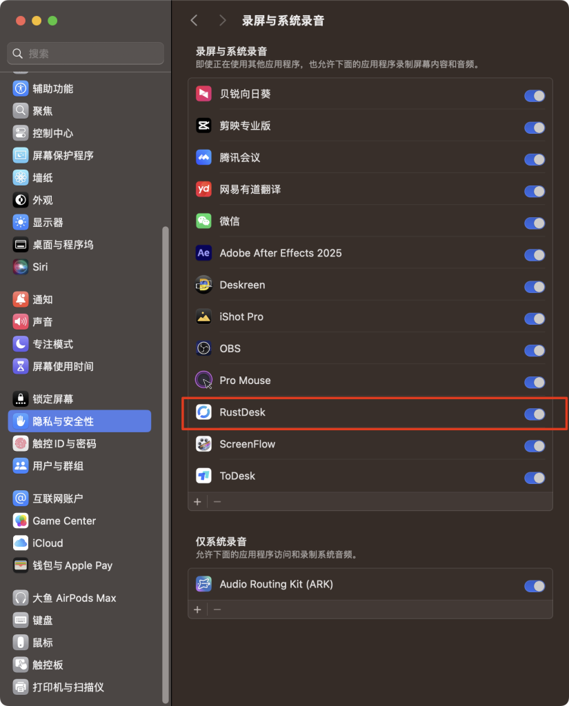 MacOS版本需要为程序配置屏幕录制和辅助功能权限,程序首次启动后会有相应的提示跟着提示配置即可。