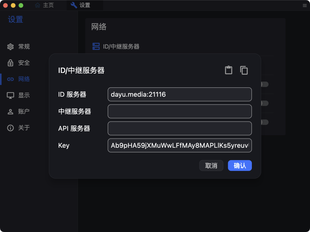点击右上角三条杠进入设置界面,点击网络,点击解锁网络设置,输入开机密码后点击ID/中继服务器