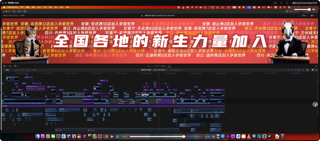 项目分辨率8690X1280,全部使用Motion纯手搓动画,(超宽屏基本上用不了模板,任何16:9模板都会产生边界问题)对于各位学习有非常大的帮助。已打包所有的素材、音乐、音效和插件在资源库中,直接运行资源库即可。字体需要提前安装