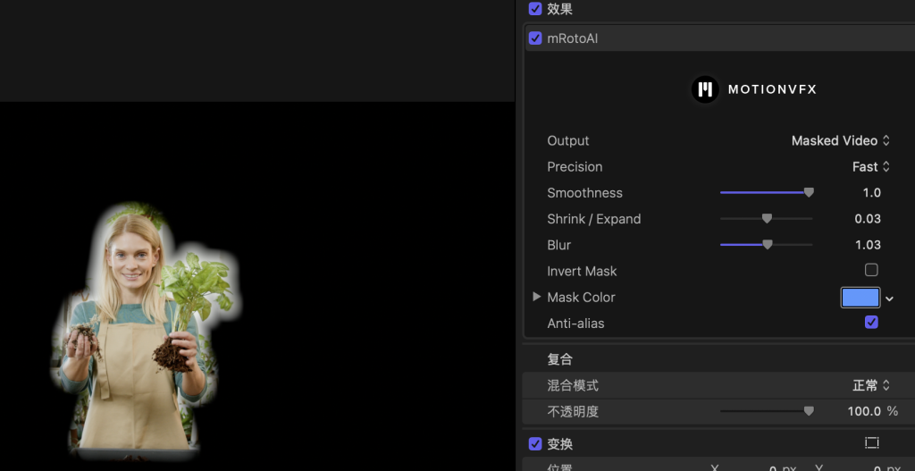 是因为抠像效果不佳导致的抖动,虚线描边不需要精准轮廓,将抠像结果无脑增加平滑度和模糊值得到平滑边缘减小抖动