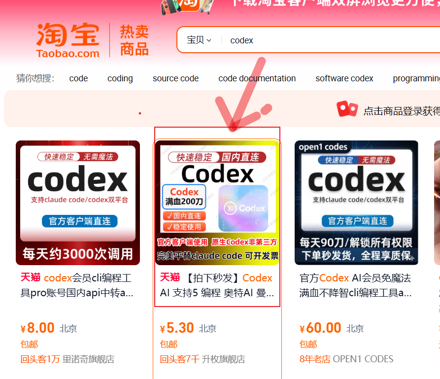 因为我们什么都不懂,所以我们需要花5块钱请一个顶级的AI助手来帮我们部署,我们可以在淘宝上搜索codex买一个5块钱的天卡。按照店家给的教程在VScode中下载codex插件,并激活。