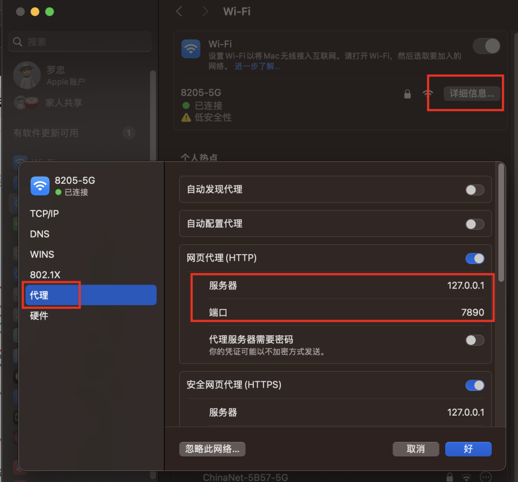如果你的电脑显存有10GB以上或者有32G以上内存的Mac,那么就让AI帮你部署indexTTS2,效果更好.把上面的指令中的indexTTS1.5改成indexTTS2即可.苹果芯片的mac是内存显存共用,可以部署indexTTS2,但是没有cuda只能走cpu模式,速度慢很多.其中的代理地址需要根据你的梯子连接后具体的地址.Windows在设置中搜索代理,mac则在网络详情的代理中可以看到.