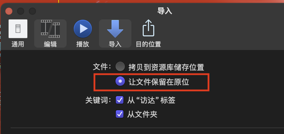 由于达芬奇没有读取FCPX资源库的权限,所以请务必在FCPX设置中将素材保留在原位置。