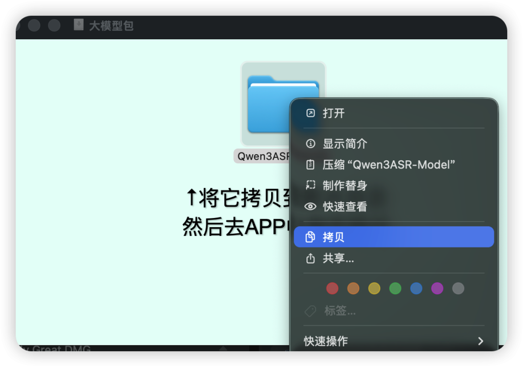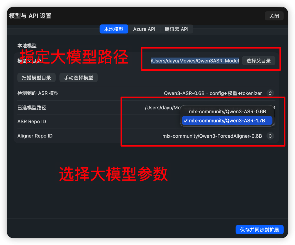 B2新增了高精度大模型,下载大模型包后打开dmg包拷贝到影片目录(由于扩展沙盒机制 无法放入外接硬盘),然后在APP设置界面指定模型路径(具体设置请往下翻查看使用教程页面)(不指定大模型也能使用,扩展内部自带了一个轻量化的本地模型)
