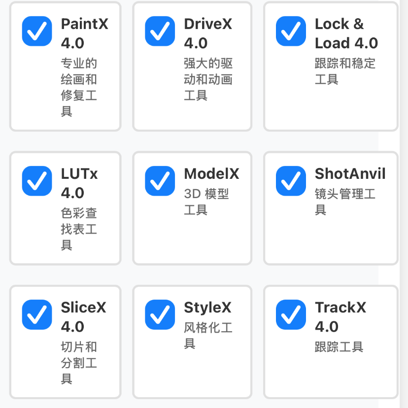 - PaintX:专业的绘画和修复工具,可用于视频画面的瘦身,瘦脸,精细绘制、瑕疵修复、遮罩绘制等,是影视后期修图和创意绘画的得力助手。