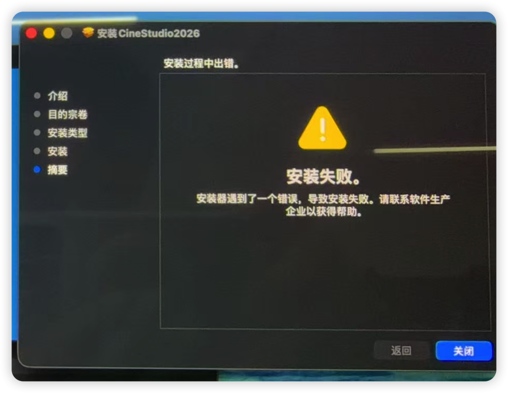 你好,M1MAX芯片Mac Studio在安装有“CineStudio2.2汉化版”的情况下,按照“CineStudio2026最新版本”安装步骤卸载前者重新安装2026版本。但提示“安装失败。安装器遇到了一个错误,导致安装失败。请联系软件生产企业以获得帮助。”,再次回滚安装“CineStudio2.2汉化版”的时候,注册机界面用同网站账号的微信登陆后,激活套装状态也显示“激活失败”,请问这个有什么办法解决吗?谢谢。