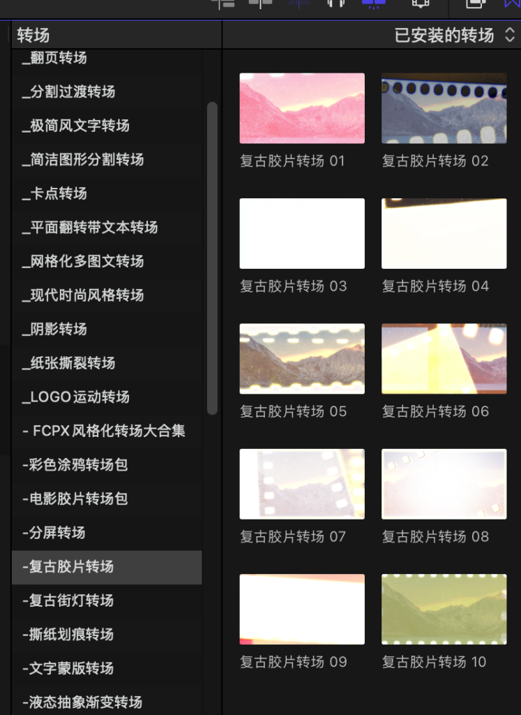 先上几道赠品开胃菜(赠品不在合集中,且没有自动安装器,需要手动将解压后的文件夹拷贝到访达上方菜单-前往 -个人 -影片- Motion Templates – Transitions(或者转场)。)