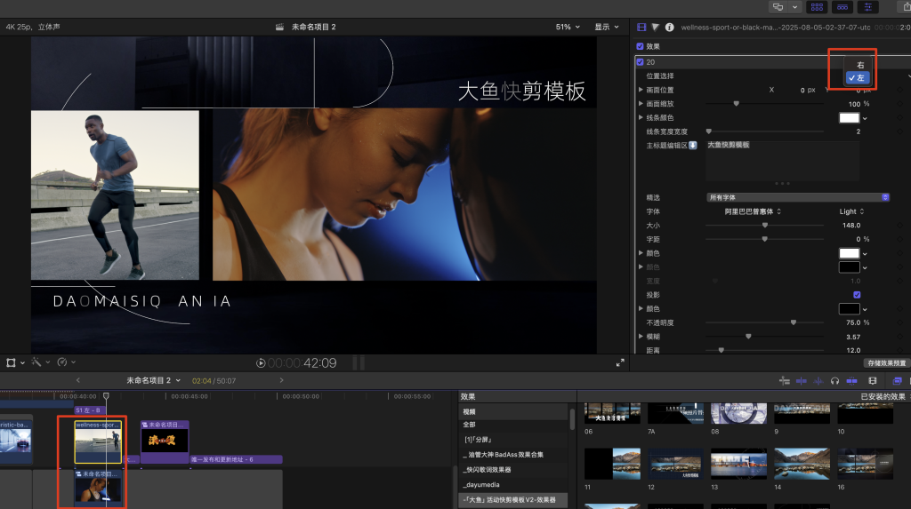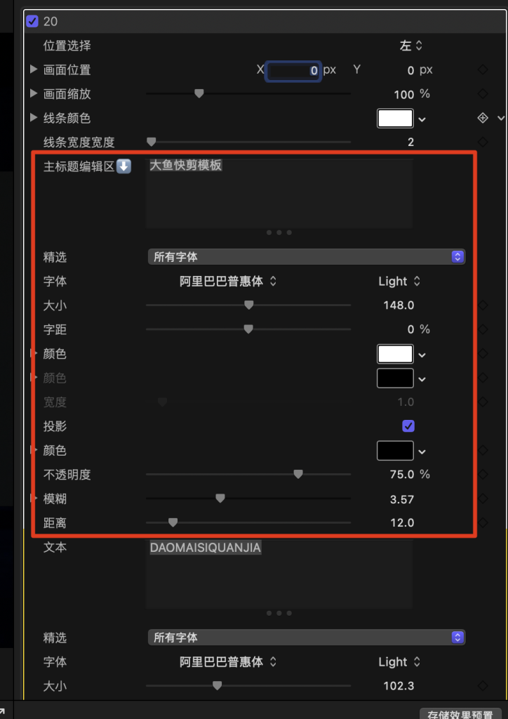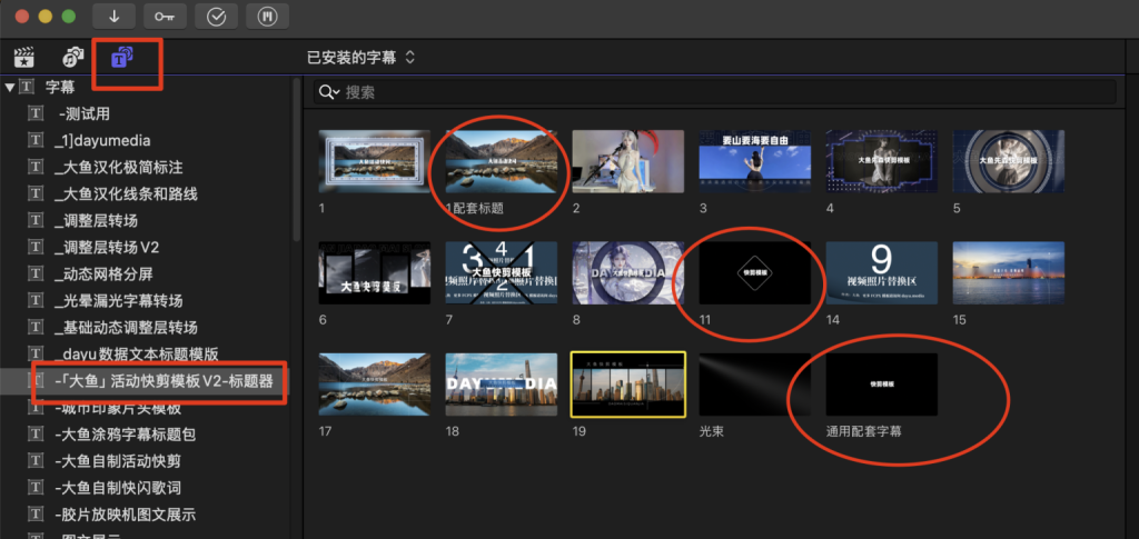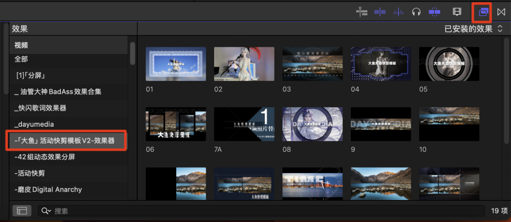 登录正确账号并且点击安装以后,会在效果和字幕中各安装一份模板文件,最初我是以字幕的形式制作的,后面发现有大量分屏和特殊效果,转制成效果器更方便使用。