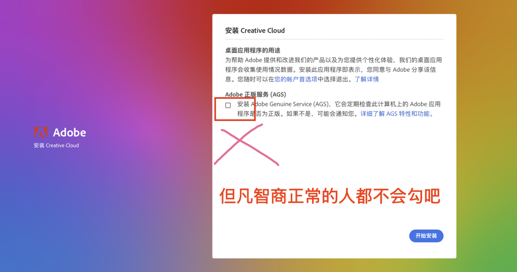 第三步打开ACC登录Adobe账号,没有就注册(没魔法的人不要点谷歌登录,不要勾选正版保护)