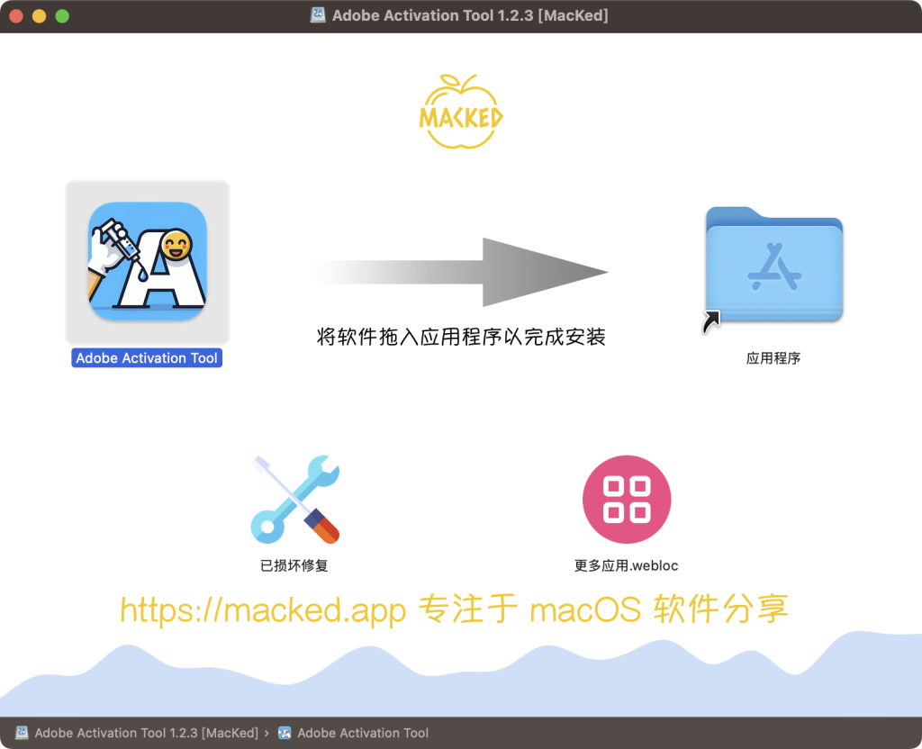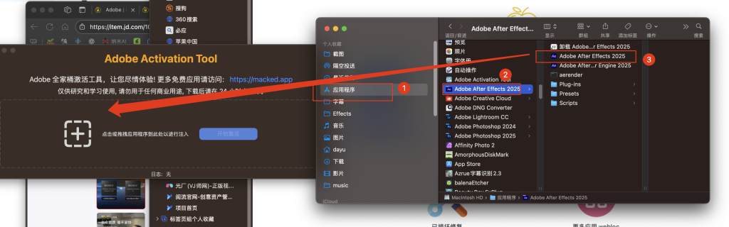 依次激活所有的Adobe程序即可。(注意是拖入软件本体.app后缀,不要把文件夹或者附加程序拖进去激活)